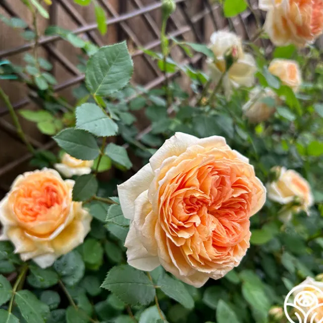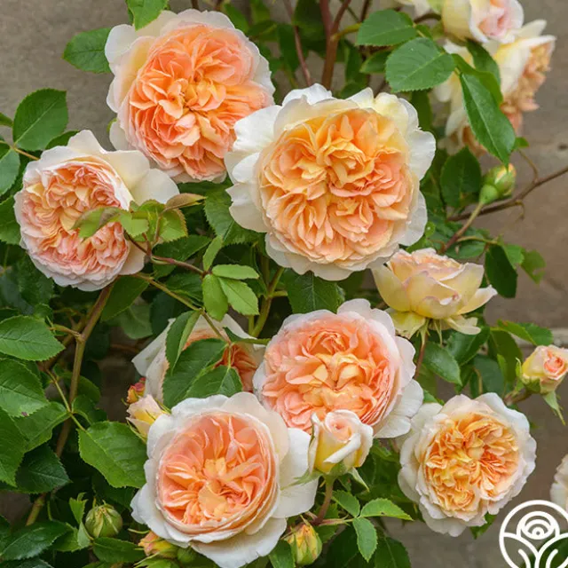 The large blooms of Bathsheba show off with 170+ petals forming shallowly cupped, apricot roses with a subtle hint of yellow. She has a delicious floral, myrrh fragrance with hints of honey and tea. This repeat flowering plant is a short Climber that will ascend a 6’ wall, fence, or doorway with ease. You’ll want to stop and soak in all the beauty of Bathsheba as her lovely double blooms fill the garden with a strong, intoxicating scent.