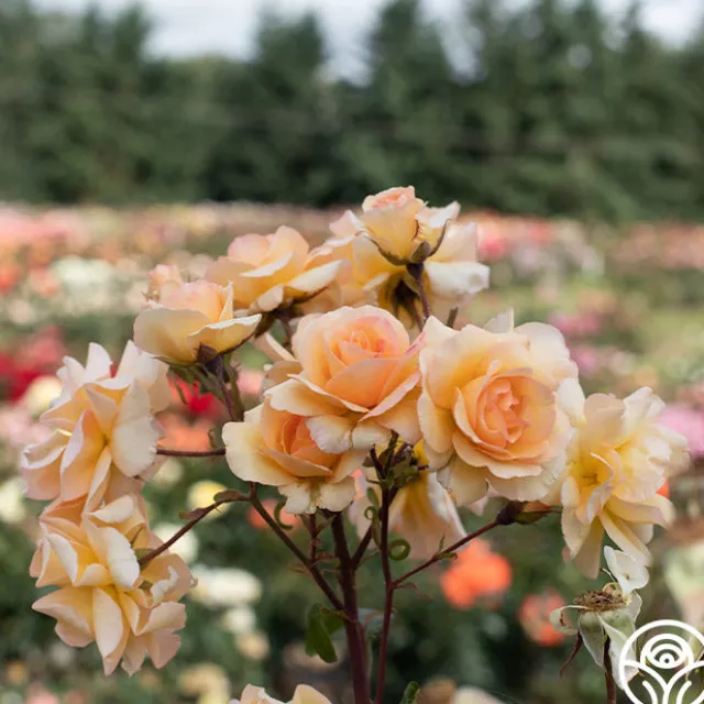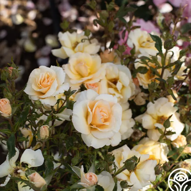 The soft apricot-shaded, buff, 3 ½” blooms of By Appointment™ are fully double with 24+ petals and are produced in lovely sprays on straight stems. This continual blooming rose has one of the prettiest bud forms and shapely blooms and is perfect for arrangements. By Appointments™is a vigorous, disease-resistant, upright bush that covers itself with dark green foliage that makes a dramatic background for its delicately beautiful blooms.
