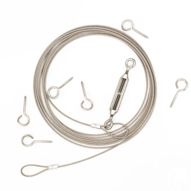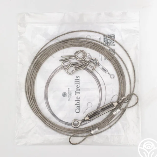 Heirloom Roses’ Cable Trellis is the perfect tool to help train and corral your Climbing Roses and other wandering vines securely while blending seamlessly into the background of the foliage. Our Cable Trellis is constructed with quality 1/8th inch stainless steel cable and weather-resistant hardware to give your Climbing Roses all the support they need as they grow up a fence, side of a house, shed, or other structure. Choose a design from our instruction manual, or create your own layout using the provided 20’ cable, 6 anchors, and turnbuckle.