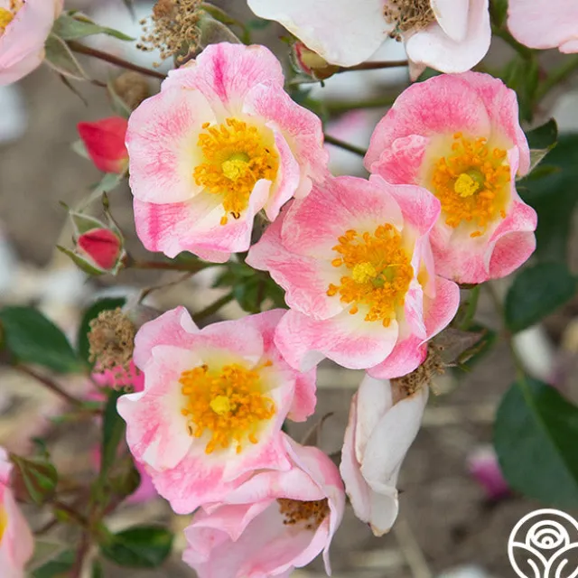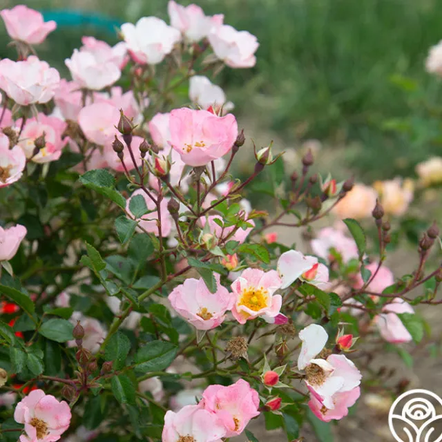 Carefree Delight® lives up to her name with delicate, 5-petaled, creamy pink flowers that are produced effortlessly in clusters of 3 to 15. Her 2” blooms blanket the bush against glossy, medium-green foliage. She is an easy addition to the garden!