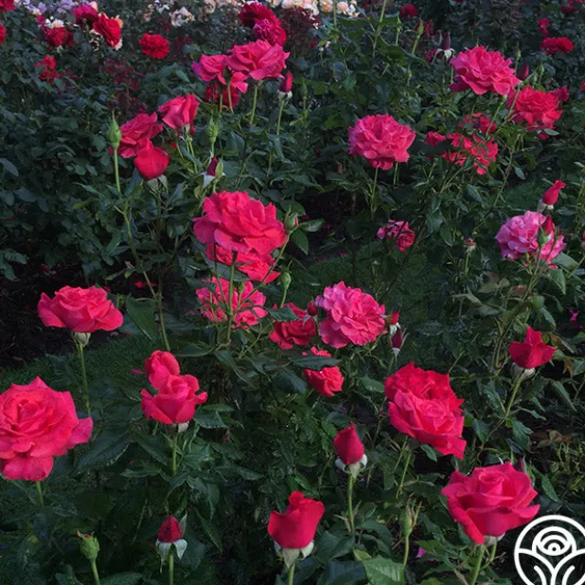 Cinnamon Dolce™ is a vigorous, upright plant producing exhibition-quality blooms. Her blooms have a cup-like form with 30+ brick red petals scattered with deep pink specks. She is exceptionally fragrant, and her flowers bloom continuously against dark green, semi-glossy foliage. Cinnamon Dolce™ is also very disease resistant to mildew and rust, making her a great rose for western states.
