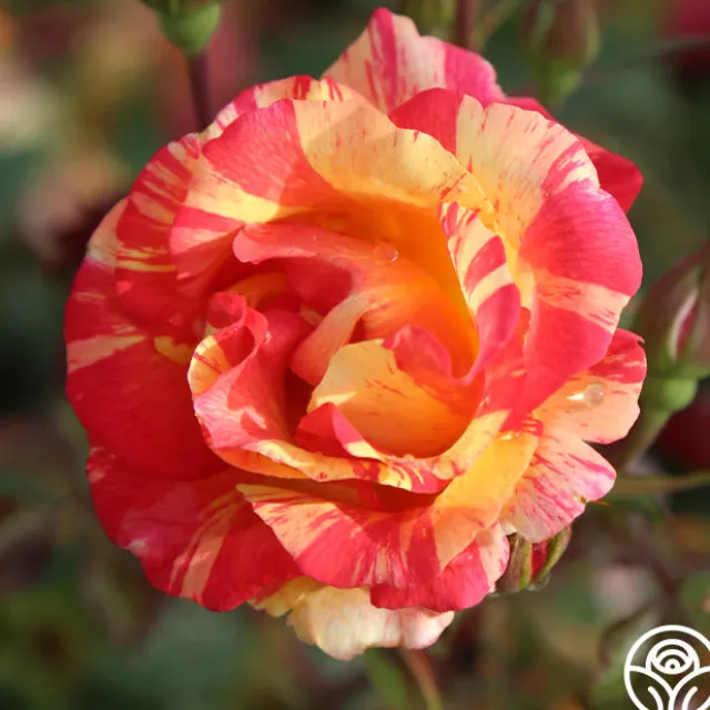 Bring a tropical paradise to your garden with Citrus Splash™. Her festive orange and yellow striped, double blooms fade to yellow and pink as they mature while exuding a delightful, sweet fruit fragrance. This Floribunda has an elegant, upright growth habit with glossy, dark green foliage that will make an excellent addition to your beds, borders, and hedges.