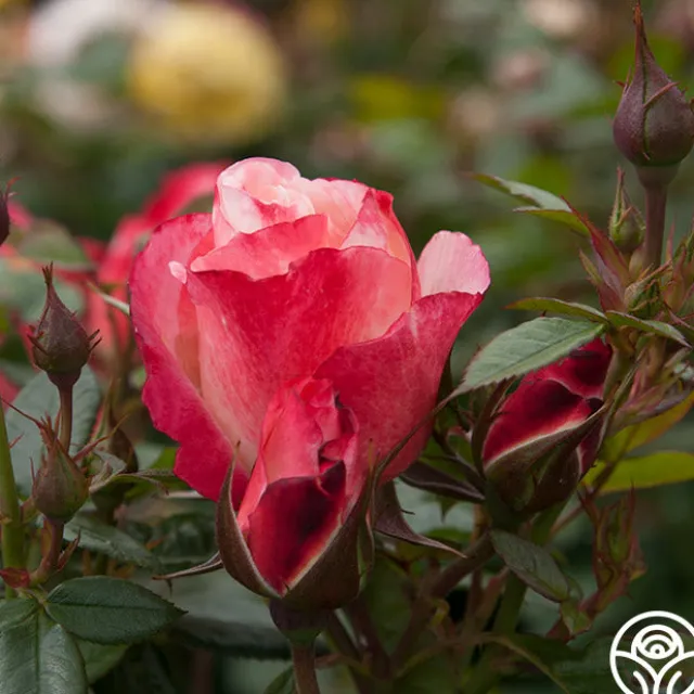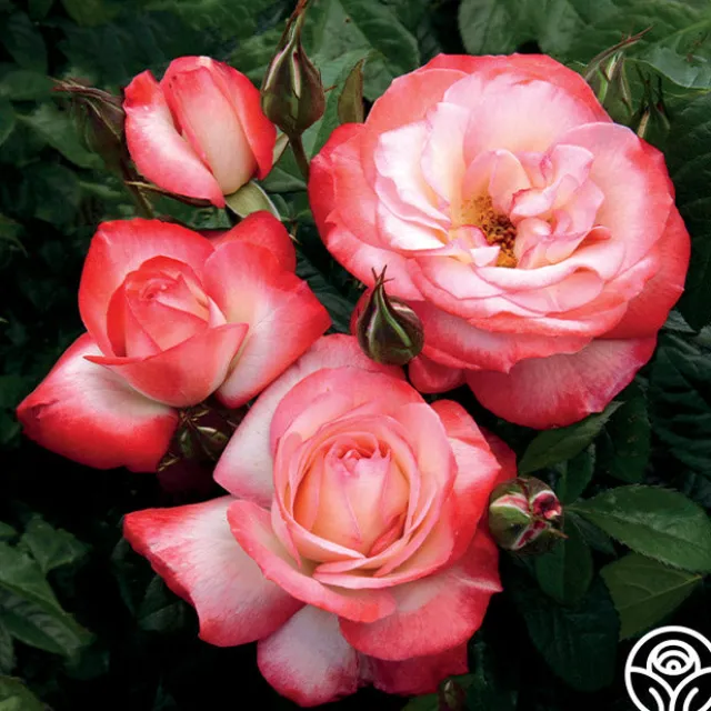 Named for Civil Rights activist and wife of Martin Luther King, Jr, this rose is as strong and captivating as her namesake. Her long, pointed buds open to large, full, clustered blooms with a creamy white center and coral-orange dipped edges. The color seems to brighten as each blossom opens to reveal 30+ petals on a 4” flower. Coretta Scott King has a moderate fragrance and excellent disease resistance growing to an average of 3-5’ in height. We love her in beds, borders, or containers as she thrives in all locations!