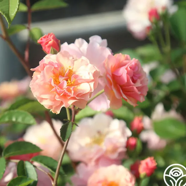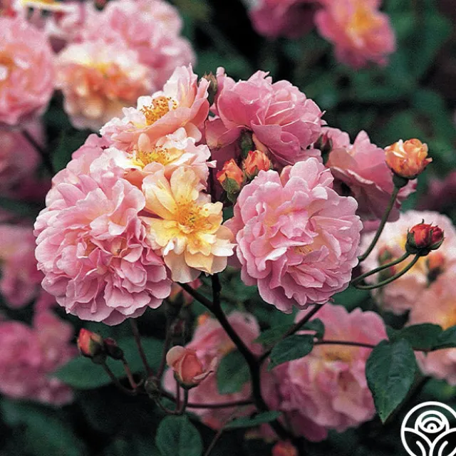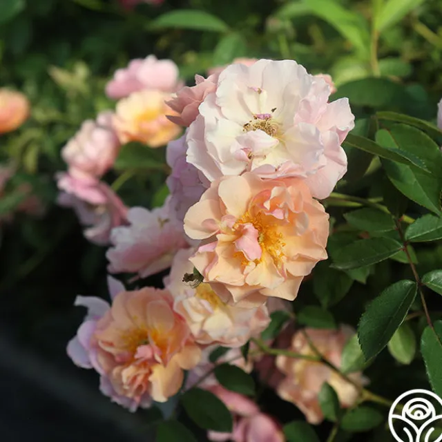 Introduced in the 1920s in the United Kingdom, Cornelia is a lovely Hybrid Musk that produces arching trusses of 2 ½”, double, rosette shaped blooms with 30+ petals in an apricot-copper color. Her very fragrant blossoms will age to soft apricot shaded on this nearly thornless plant. Expect her to be a strong growing and continual blooming rose with glossy, dark green foliage.