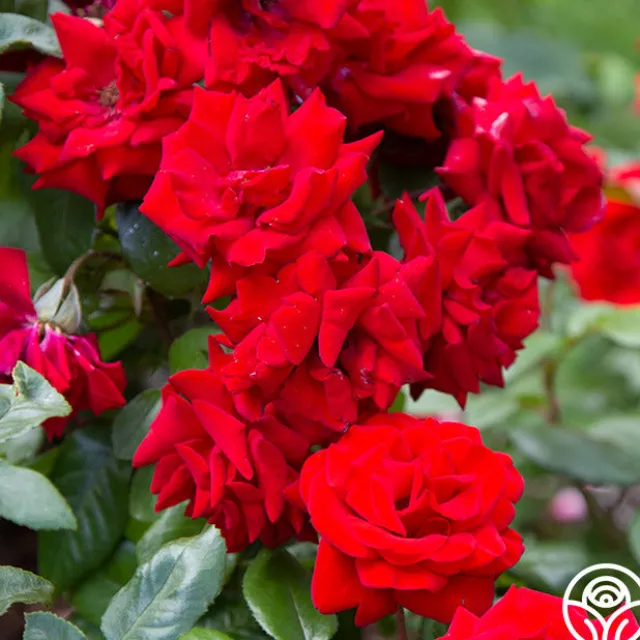 This Grandiflora is a bit smaller than others, topping out at around 3-4’ tall. Crimson Bouquet™ produces large, long-lasting flowers that bloom singly and in large, open clusters with dark green, glossy foliage. Her blooms are the deepest, intense crimson red with a light but sweet fragrance. Enjoy this continual bloomer in beds, borders, or pots.