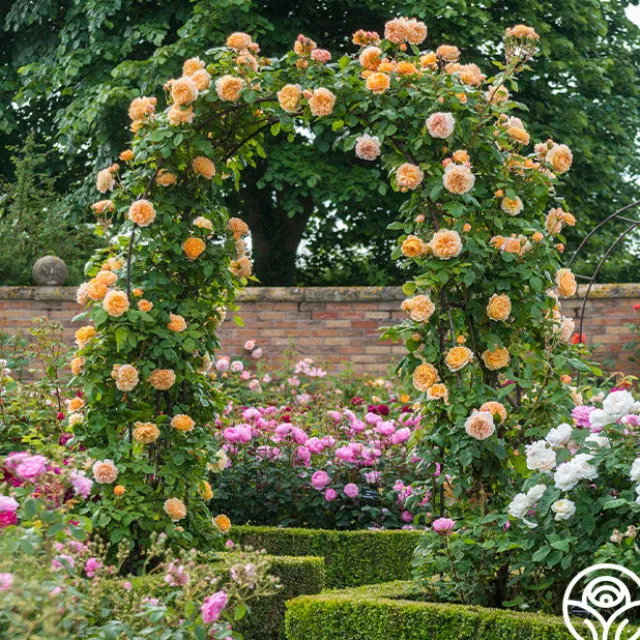 There is so much to love about Crown Princess Margareta including her stunning, on-trend, apricot orange color blending which is a rare color for a David Austin Rose. She features vigorous, arching growth and the versatility to be grown as a short climber. Her blooms are very fragrant with a delicious, fruity fragrance easily noticeable from the 100+ petals of her 4-5″ blooms. Plant her in full sun or partial shade and enjoy blooms throughout the summer months!