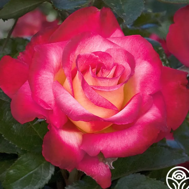 Dick Clark, the entertainer, was as timeless and loved as this rose. His black-red buds spiral open to showy swirls of cream edged with vibrant, cherry red. Under the intense sun, these classically-formed and cinnamon-spiced fragrant flowers begin to blush a stunning burgundy color. Dick Clark is a continual bloomer on a tall, bushy, upright plant with large, glossy, dark green foliage. He is sure to be as loved in your garden as his namesake was in Americana television.