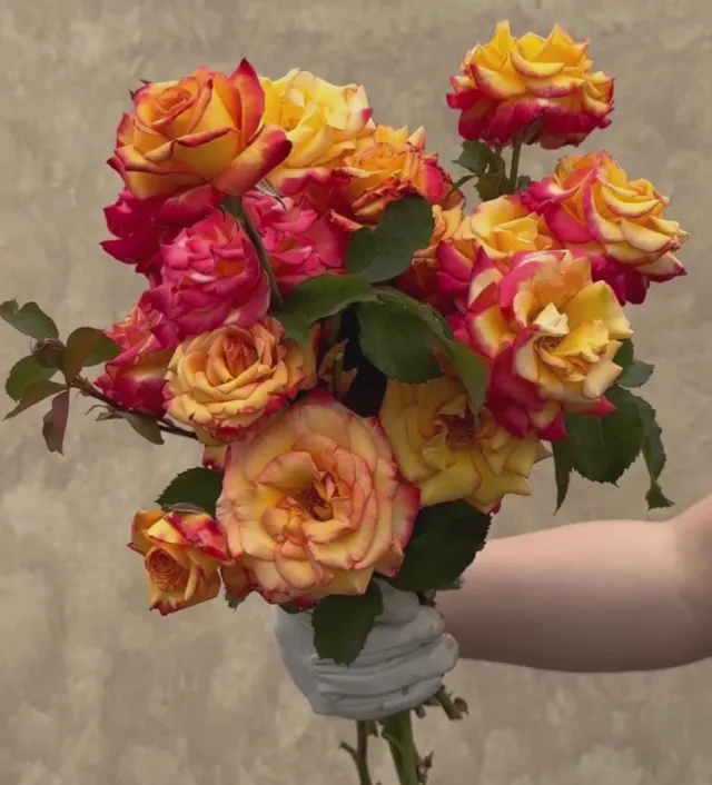 Dream Come True™ is an absolute delight with her flawless, yellow blossoms accented with ruby-red at the tips of her petals. She is a continual blooming plant, yielding long-stemmed, long-lived blooms against matte green foliage. With a petal count of 40+ and large blooms of 4.25”, Dream Come True™ gracefully ages to all ruby-red while emitting a gentle, tea fragrance.