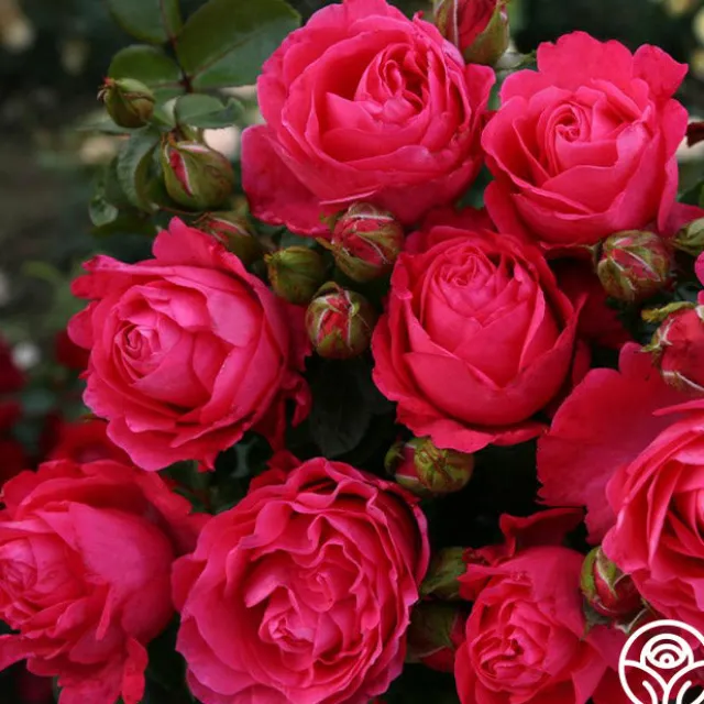 This Hybrid Tea is very resistant to diseases, including blackspot and mildew. The very large, very double, deep pink to cherry-red flowers grow in small clusters. While Eleganza® Fiji’s roses are lightly fragrant, she is a prolific producer. Lightly glossy, medium to dark green foliage fill in the few small gaps left by the clusters of blooms. Eleganza® Fiji is a more compact rose reaching about 4’ tall and 3’ wide which makes it perfect for planting in front of other plants or in a pot.
