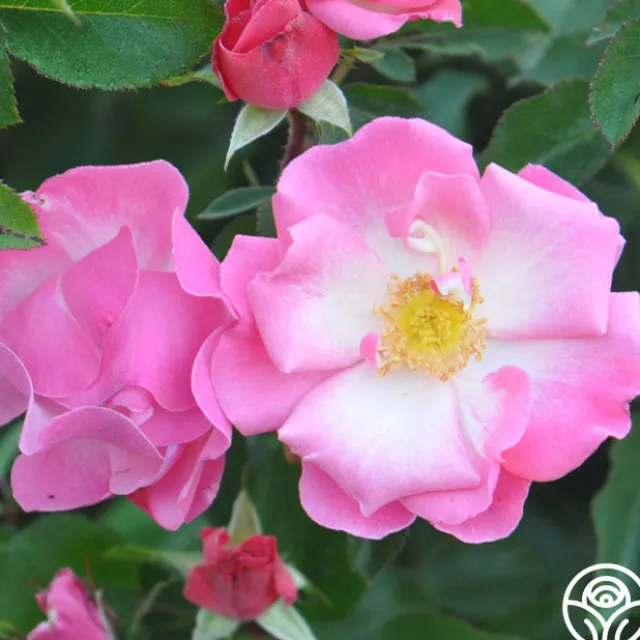 Bred here at Heirloom, this moderately fragrant rose is sure to make a statement in your garden. Fashion Statement™ has medium sized blooms with white centers that blend to a stylish crisp pink toward the edges of her 8-12 petals. The lovely flowers are set atop a continually blooming, bushy plant that densely covers itself with striking foliage.