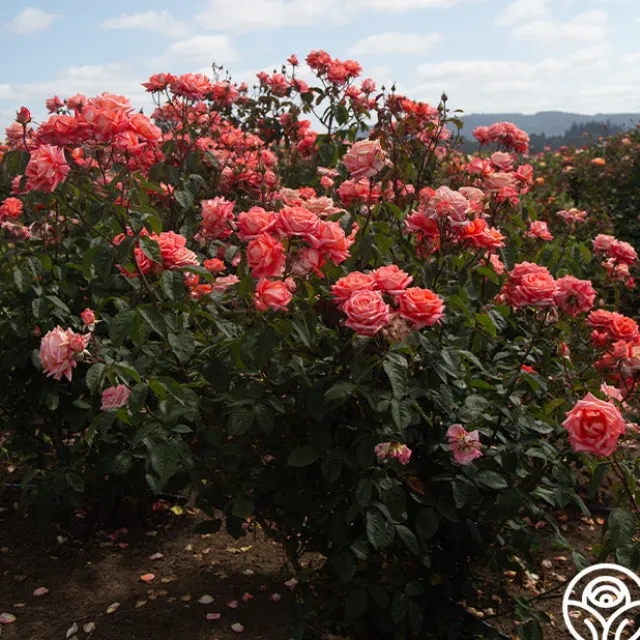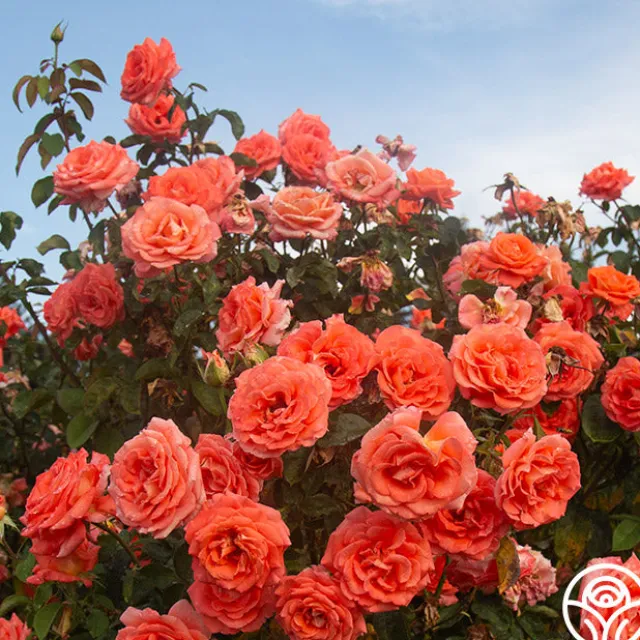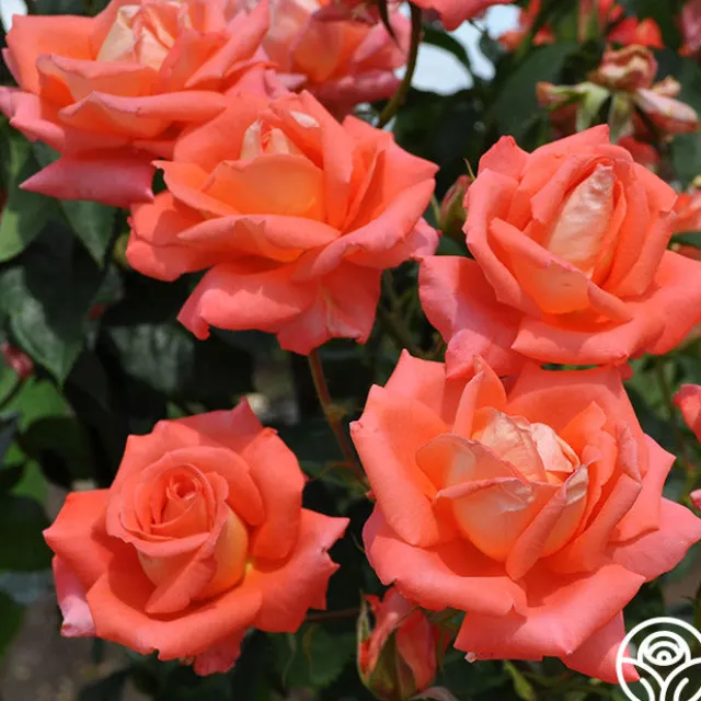 With waxy foliage and exhibition-style flowers, Folklore™ will soon become the talk of the town. One of the very few Hybrid Tea roses that produce a perfect bloom almost every time, she features long, pointed buds in a striking combination of orange and salmon shades. Folklore™ has an intense fragrance on a very tall plant that should be at the back of the rose bed or may be used as a short climber of about 8′.