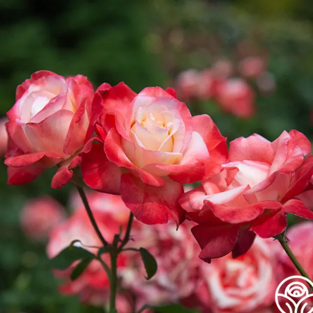 TOP SELLER! A must-have addition for lovers of pink roses, Gemini® looks like a work of art with graceful brushstrokes across each petal. No other continual blooming rose produces such constantly perfect and beautiful, massive, 5 1/2″ blooms with a petal count of 25+. She is dependable and prolific with her production of a lovely blend of cream and coral flowers on long cutting stems. Gemini® is an All-American Award winner and hard for us to keep in stock!