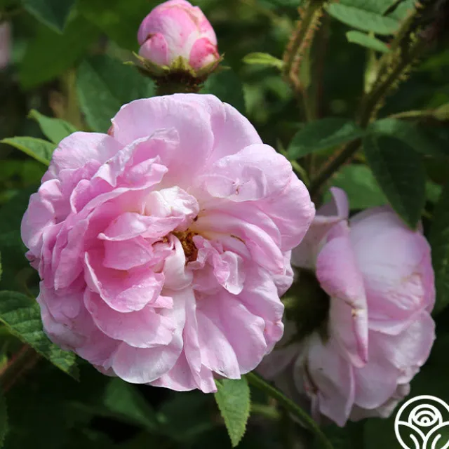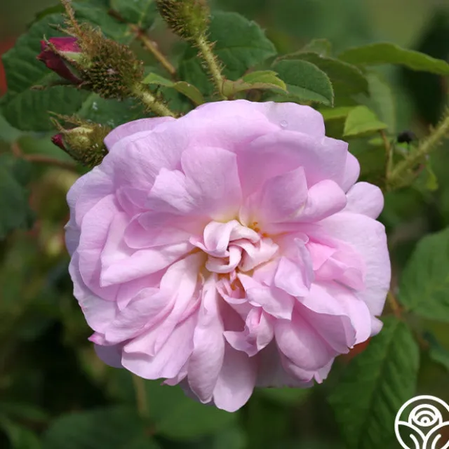 This exceptionally fragrant Moss Rose was introduced in 1856 and features light pink blossoms with lilac shading. General Kleber’s 4” blossoms are large and very quartered in form with 100+ petals. He is a once-blooming rose in spring or summer with unique mossed buds. This rose can be trained as a Climber or left as a Shrub.