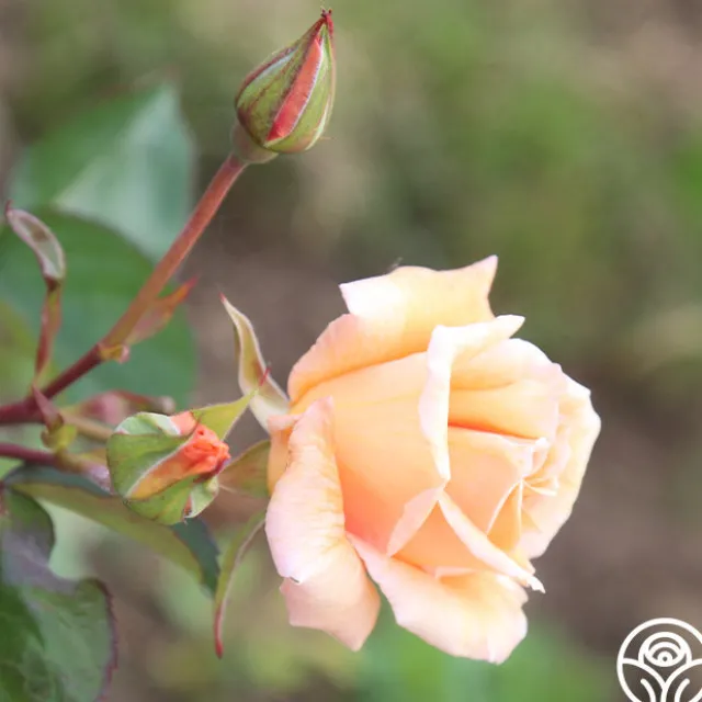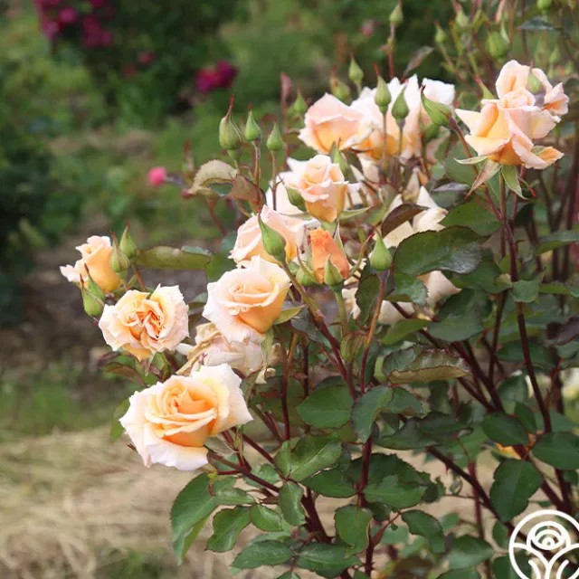 You will fall in love with the sweetness of Gentle Persuasion™. This Hybrid Tea from Griffith Buck glows with a rich apricot, shading light toward the petal edges. Sweetly fragrant, she grows fully 4″ double high-centered, continual blooms with 25-30 petals on an upright, yet somewhat spreading bush, whose leaves start out a bronze-red and finish an olive-green. Her unique quality is the serrated red edges on the mature leaves. She is winter hardy in the midwest without protection.