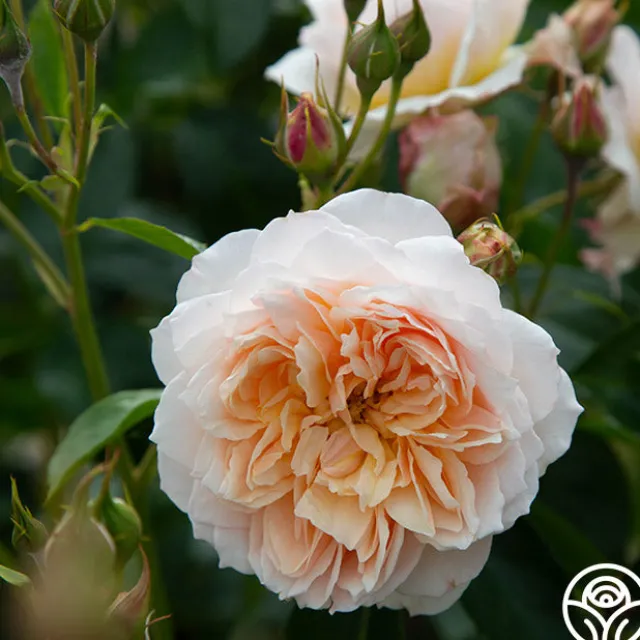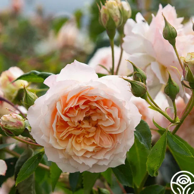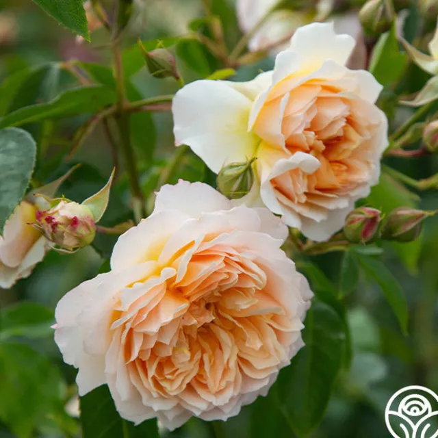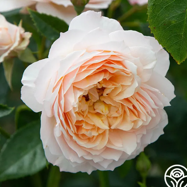 Ginger Syllabub™ is a vigorous, continual blooming Climber with amber to apricot colored 4” blooms with 70+ petals that exude an exquisite perfume. Her fully double, romantic blooms fade to the edges and are ever-so-gently ruffled. She thrives in zones 5-10.