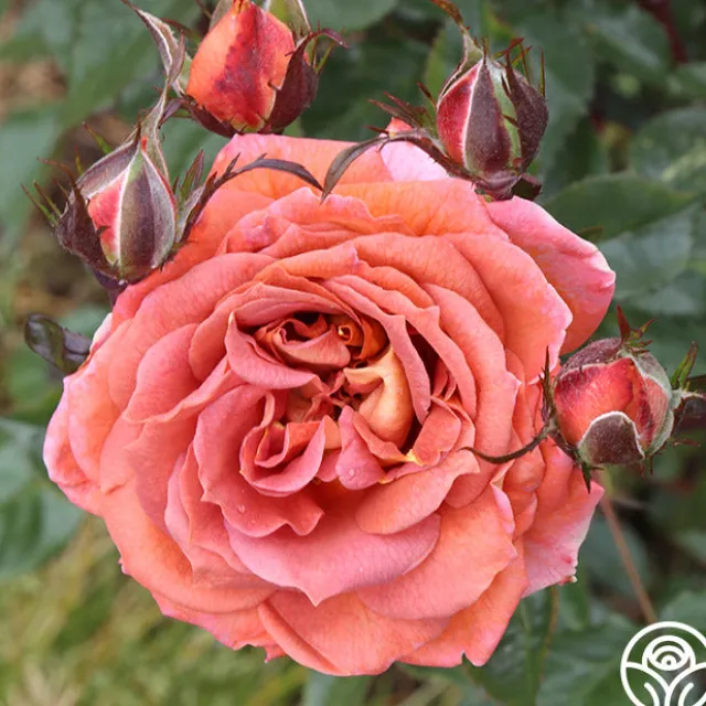 - Iris Webb produces orange-tan blossoms that appear almost as a dusty coral with yellow reverse that darken as they age. Her high-centered blooms average 2 ½” with 17-25 petals each set against semi-glossy, dark green foliage on a bushy, upright plant. We love her unique coloring and moderate fragrance.