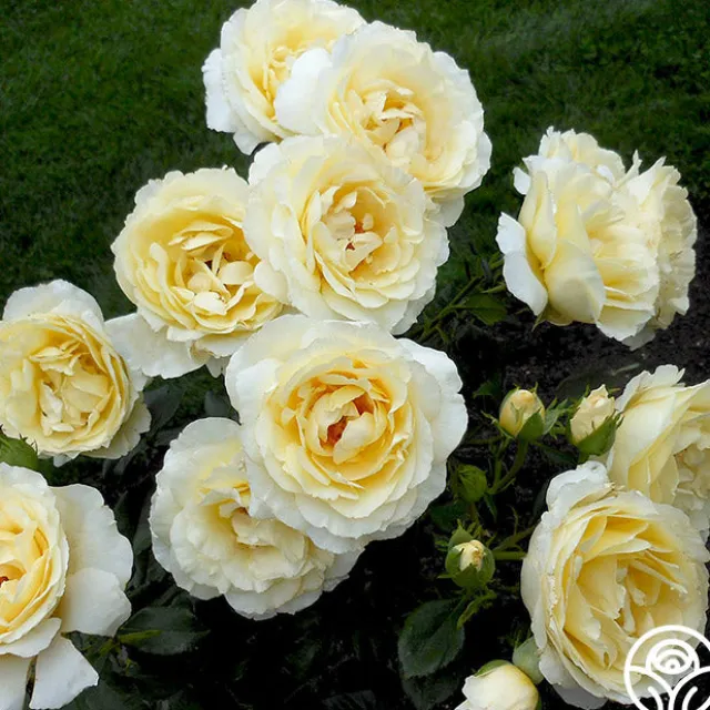 Irish Hope™ produces lovely, soft yellow, 4” blooms with 50+ petals in bold clusters with frilled petal edges. At times, her flowers appear in a blushed lemon. Irish Hope™ has a deliciously sweet honey-lemon perfume and is a tall continual blooming plant with dark-green healthy foliage. Choose this rose for her ability to grow effortlessly in even the most difficult of conditions.
