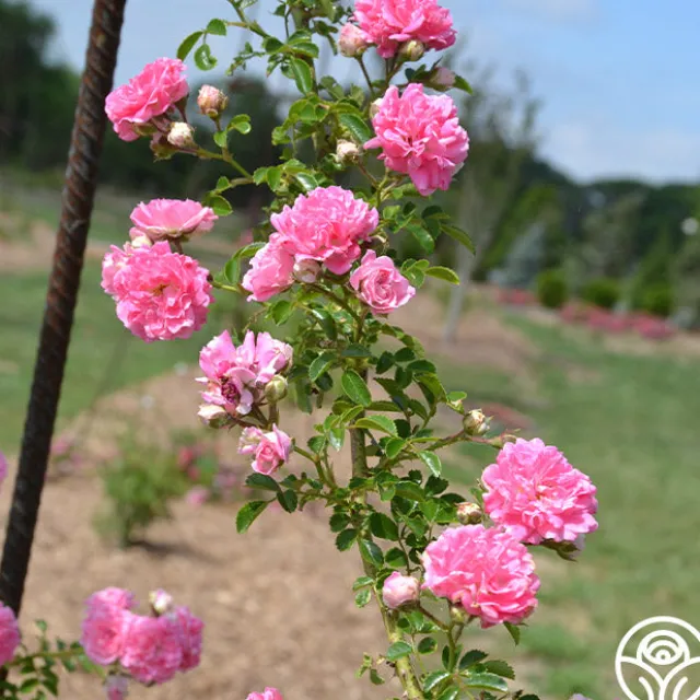Lady Gay is a rare Rambler that has previously not been available commercially in the US. We are partnering with the American Rose Society (ARS) to save these nearly extinct ramblers from Anne Belovich’s personal rose collection with the goal of having this rose in three public gardens and at least 30 private collections. A portion of the proceeds of the sale of this rose will go back to the ARS’ Save the Ramblers initiative to further support the work of preserving these nearly extinct ramblers.