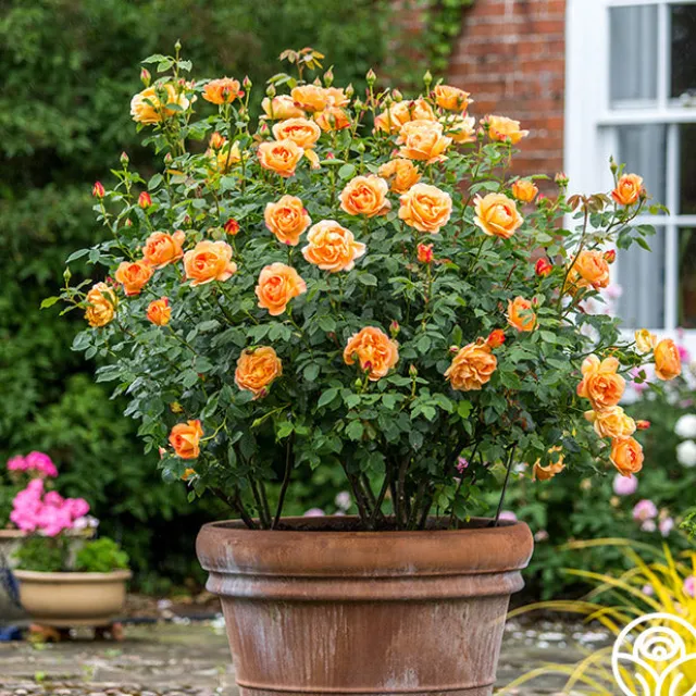 Lady Of Shalott (pronounced shuh·lot) is prized by rose lovers and considered to be one of the best David Austin Roses for her remarkable flower performance and disease resistance. Her young buds of vibrant, orange-red open to form chalice-shaped flowers filled with loosely arranged petals of salmon pink with a golden-yellow reverse. The flowers are deliciously fragrant with the scent of warm tea and hints of spiced apples and cloves. Lady of Shalott quickly forms a large, bushy shrub with slightly arching stems and mid-green foliage. She is a must-have for the cutting garden and thrives in zones 4-11! If you had to pick just one David Austin Rose, this might be the one!