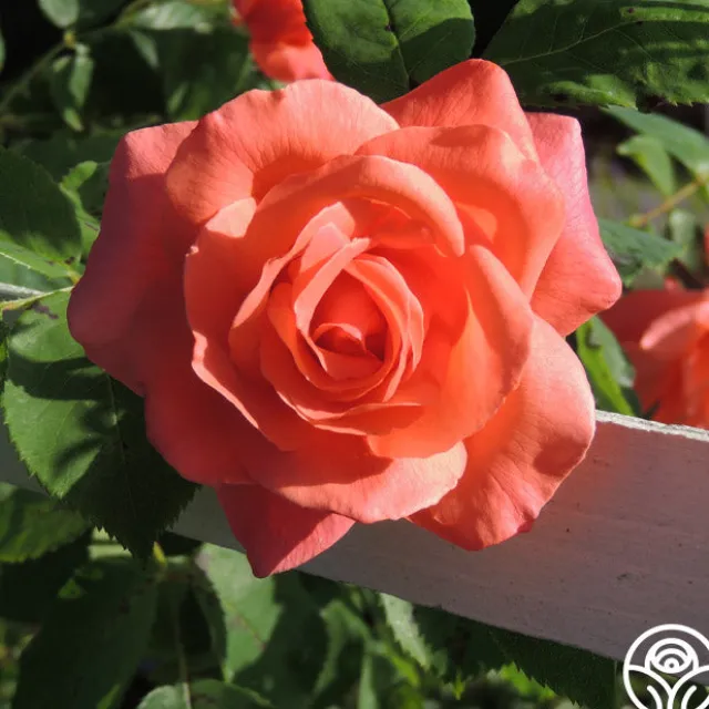 Leaping Salmon produces huge, double, salmon colored, 4″ blooms with 15-24 petals each. Her blossoms form singly and cascade in clusters on strong cutting stems. Expect upright and arching canes with large, semi glossy foliage. Leaping Salmon is a great choice for a vertical cutting garden!