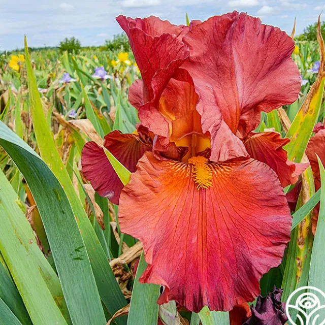 Note: Bulbs ship starting in October based on availability and your zone, unlike other products. Plant around or after your first frost but before the ground freezes. Lest We Forget is a reblooming bearded Iris with unique, smoky red-purple petals and a soft lavender sheen across the falls. Bright tangerine beards add bold contrast at the center. It blooms first in late spring and then again later in the season, giving your garden a second round of color. It grows about 36″ tall, is lightly fragrant, and works well as a cut flower. Hardy in Zones 3–9 and deer resistant.