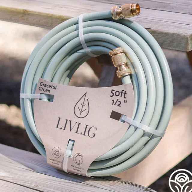 Your garden hose should be not just utilitarian, but beautiful as well. Our Luxe Garden Hoses come in two different lengths, 50 ft. or 100 ft., to accommodate any garden size. Choose from three designer colors: Gentle Griege, Romantic Rose, or Graceful Green to add a touch of class to this very important garden tool.