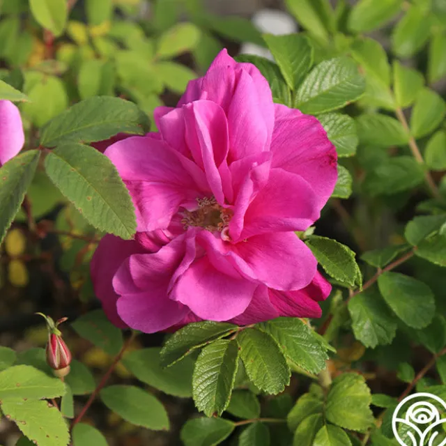 Moje Hammarberg is an excellent Rugosa, though widely unknown in the rose world. His large, violet-crimson, double blooms have a wonderfully strong fragrance and, like many rugosas, will produce both hips and blooms simultaneously in late summer. Moje Hammarberg is a repeat bloomer with strong disease resistance in zones 3-9.