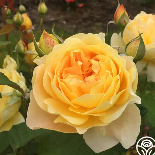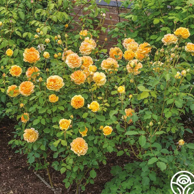 Molineux® is a compact, many-petaled, golden yellow rose with 4″ blooms of 50+ petals. Her deeply colored centers are a blending of peach and apricot. She is a proficient bloomer with a wonderful fruity fragrance. Molineux® is a bushy plant that will bloom continually and is perfect for smaller gardens with her compact nature. We recommend using her in mixed borders, as a low hedge, or in pots.