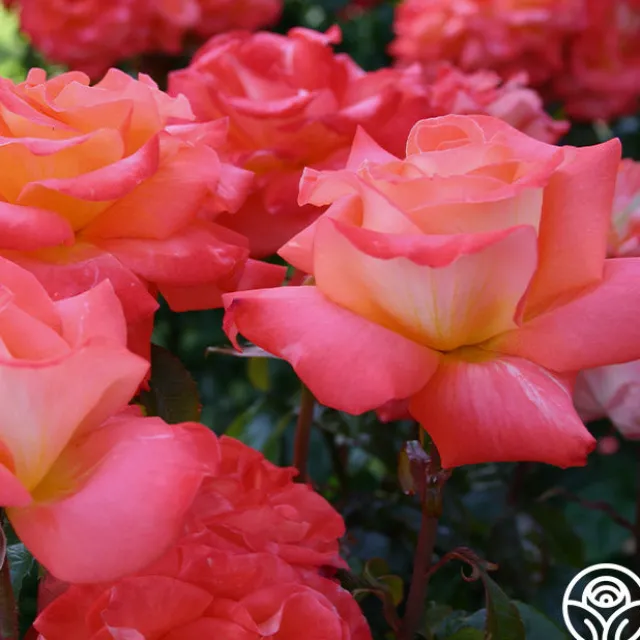 With all the hues of fall gracefully blended into one rose, Octoberfest™ boasts the best of autumn’s awe-inspiring display of colors. Elegantly pointed buds open into ever-changing yellow, orange, and red blended together to form a beautiful, large, double, cluster-flowered, with a high-centered bloom. Octoberfest™ is a tall, upright plant with large, glossy, dark green foliage providing a backdrop for her 5” blooms. We especially love how easy Octoberfest™ is to care for and appreciate her strong disease resistance! Add her as a no-fuss addition to your garden!