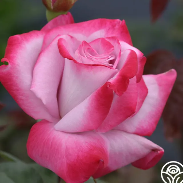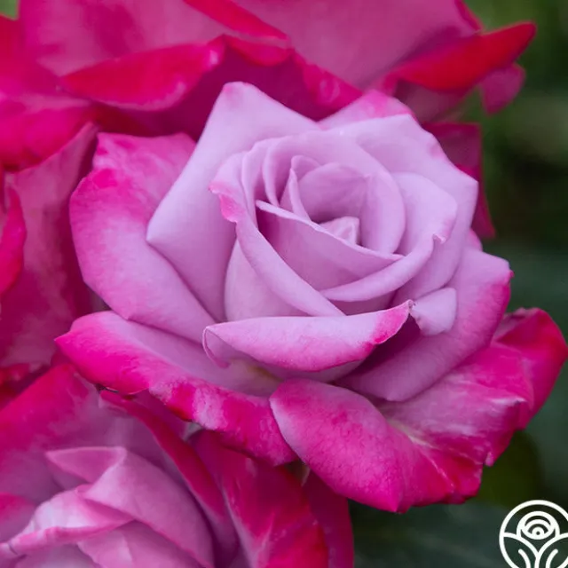 A true classic rose in form and color, Paradise™ is easy to fall in love with. Her perfect, 5-6″ blooms, with a petal count of 30+, are deep lavender edged with a lovely red violet. The color draws you in and her lovely rose fragrance will make you linger just a little longer. Paradise™ is a continual bloomer with dark, green foliage. Expect her to lighten to a soft blush as the weather warms up.