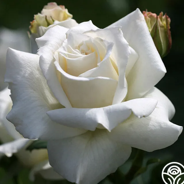 Pascali® is a classic, exhibition-style Hybrid Tea with a very light fragrance and creamy, clear white flowers. His blooms are borne one to a stem on a vigorous, compact, repeat blooming bush with dark green foliage. Pascali® does best in the warmer zones of 7-10.