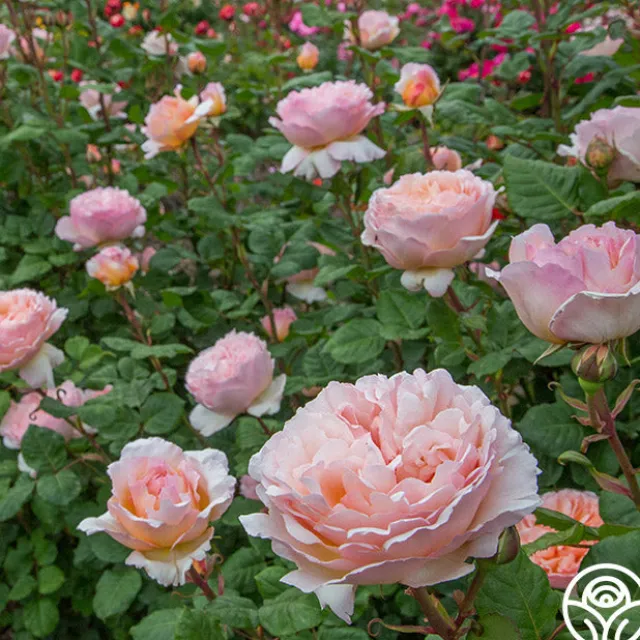 TOP SELLER ALERT! The scent and color of Princesse Charlene de Monaco® is enough to melt your heart. She has 100+ ruffled petals of an apricot to shell pink color per bloom and produces a strong, sweet perfume thus making her well deserving of the title of princess. The repeat blooming pattern of this rose from spring all the way to fall makes it a great option for cut flowers. Glossy, dark green foliage beautifully frames large, strikingly colored blossoms. Not only is this rose an eye-catcher with her beauty, she is incredibly disease resistant and rain tolerant as well.
