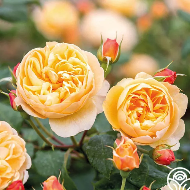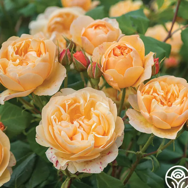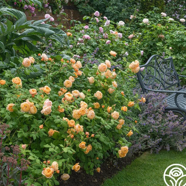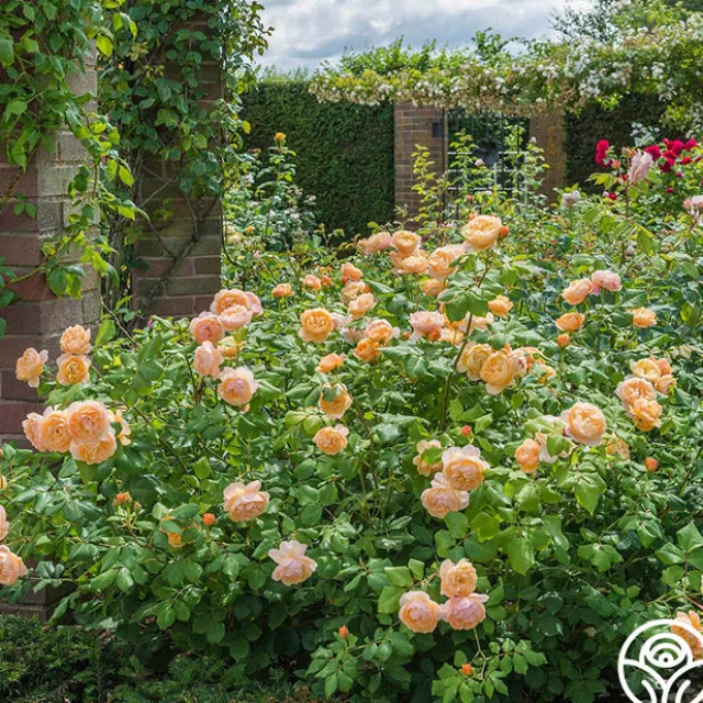 Literary lovers need this sweet, fruit-scented rose in their garden collection. The soft apricot and peach-colored English blooms are reminiscent of James and the Giant Peach and are continuously in bloom. This rose is a medium shrub that is incredibly robust, disease resistant, and nearly thornless. Roald Dahl can be planted in containers, borders, hedges, and even slightly shady locations.