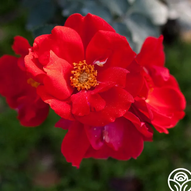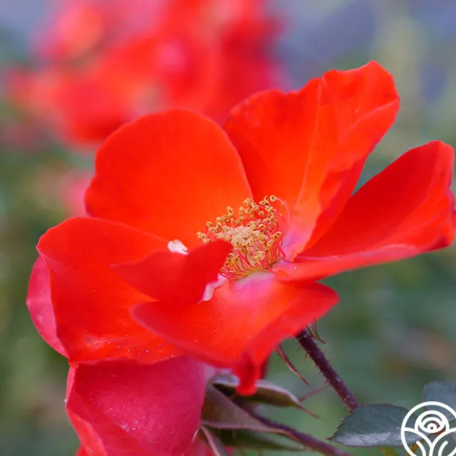 Sarabande® pushes out blossoms that are a light orange and red blend, blooming in large trusses. Her semi-glossy foliage, slightly fragrant perfume, and low bushy growth is bound to attract attention. She is a great choice for pots and will attract a variety of pollinators to your garden.