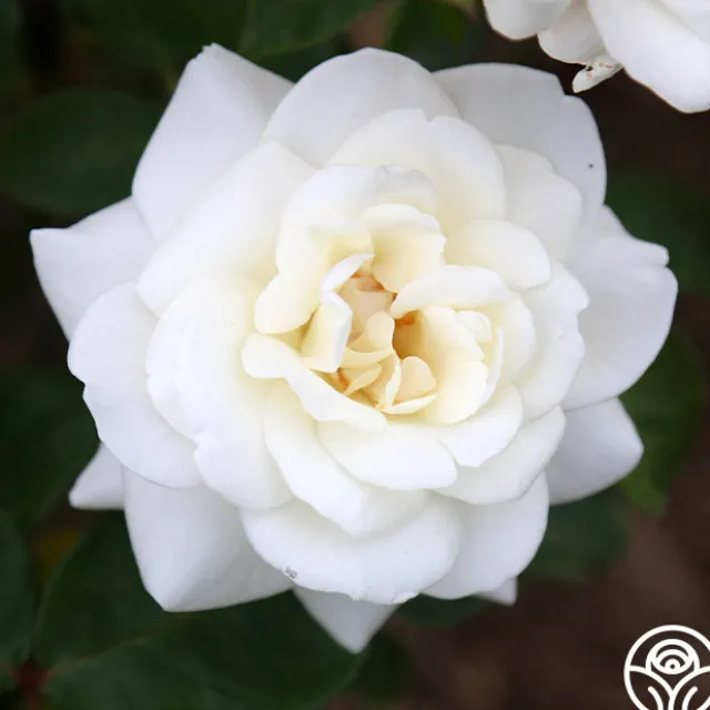 Lovely, double 4″ blooms (petals 33) of gardenia white. Borne in clusters on a vigorous continually blooming bushy plant with leathery green foliage. AARS winner. Very fragrant.