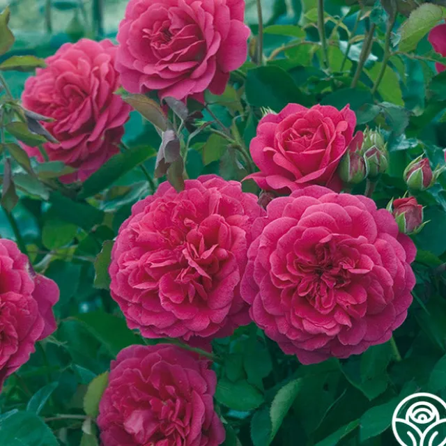 This rose starts with small buds that open to full-petalled flowers with a bright, deep pink color that intensifies with age. As a lightly fragrant and continually blooming rose, the rosettes also become more dome-shaped over time. The flowers are 2 1/2–3 inches in diameter on average and produce very freely on a healthy, very bushy, slightly arching, medium-sized shrub. The plant grows to be 4’ tall and 3’ wide.