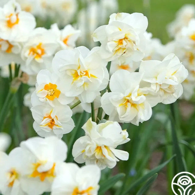 Note: Bulbs ship starting in October based on availability and your zone, unlike other products. Plant around or after your first frost but before the ground freezes. An award-winning Daffodil, Sir Winton Churchill blooms with up to 4 flowers per stem and is deeply fragrant. His white ruffled petals are offset by inner creamy yellow petals for a delightful display in the garden or vase. This variety is surprisingly hardy for more difficult soil conditions and colder or hotter temperature zones. This early-mid spring bloomer can perform well in zones 4-9 and will reach 15” tall. This Daffodil is deer resistant and easy to grow.