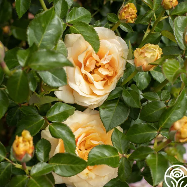 - St. Tropez is a wonderful blend of apricot and orange flowers with ruffled, 5” blooms that emit a powerful fragrance. Her glossy, green foliage covers the bushy plants and sets the stage for a magnificent show of blooms. This repeat bloomer does really well in beds, borders, or pots and is a great choice for zones 5-9.