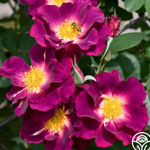 Stormy Weather™ is a beautiful Climber with her 4”, dark purple blooms with lighter reverse and centers with golden-yellow stamens. As she ages, her color fades to a gentle lavender. These cupped to flat blooms are produced in clusters and emit a spicy fragrance. Expect Stormy Weather™ to show more purple-blue tones in cooler weather.