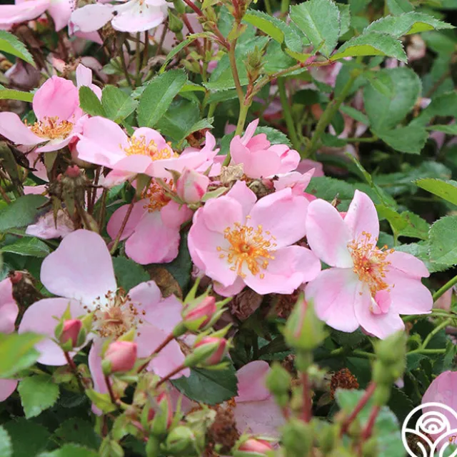 This rose’s flowers truly blur into a sweet haze of beauty in the garden. Sweet Haze® features masses of large clusters of lilac-pink blooms with a pronounced golden center. Her light, but sweet fragrance wafts gently from flat petaled, 3” flowers that sit among dense, glossy, green foliage. Choose this favorite of pollinators for zones 5-10.