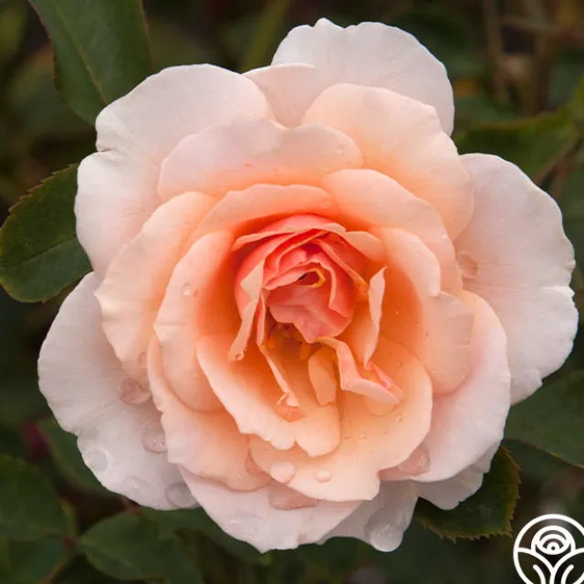 A rose to stand beside the beauty and grace of any young lady. Sweet Sixteen™ has outstanding rich golden centers nestled in petals of soft pink blended with soft peach. Sweet Sixteen™ is blessed with a wonderfully strong perfume and her blooms are borne in clusters on an upright bush. We love her beautiful crimson-red new foliage which matures to rich, leathery green.