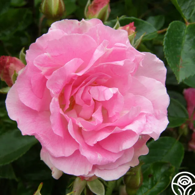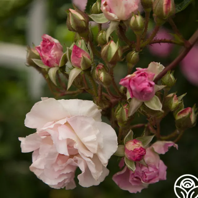 Introduced in Germany in 1906, Tausendschon produces large, medium-pink flowers that fade to almost white in the center. Her blooms are borne in clusters set against glossy, light green foliage on an almost thornless Rambler. This large rose can grow upwards of 15-20’ tall and will be a repeat bloomer. With a name that translates to “dazzling”, add her somewhere she can take off and enjoy this beautiful rose for years to come.
