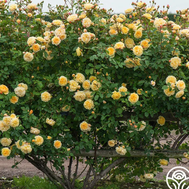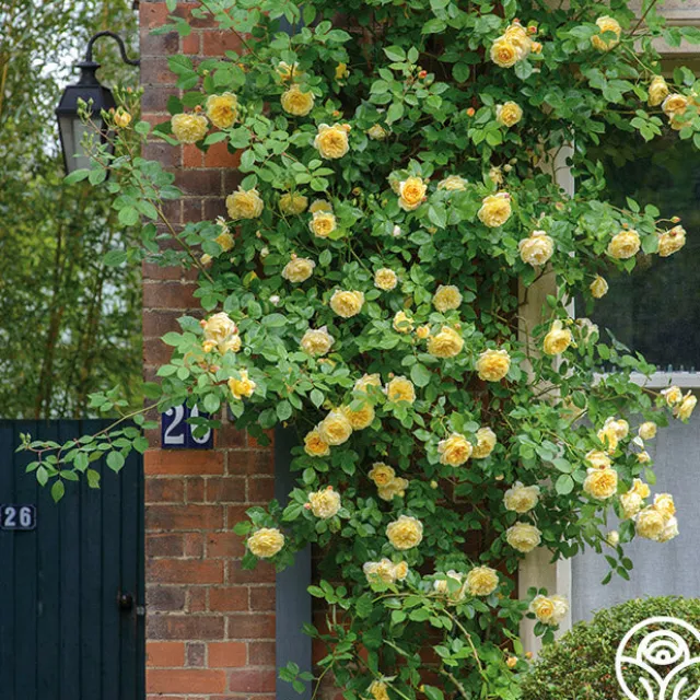 Perfect for an obelisk, arch, or climbing a garden wall, Teasing Georgia™ is a lovely, deep yellow rose with outer petals fading to a gentle, pale yellow for a two-tone effect. Her cupped, 4-5” flowers feature 50+ petals and emit a delightful and strong tea rose fragrance. Teasing Georgia™ is a strong, continual bloomer thriving in zones 5-10. She is also the winner of the Henry Edland Medal in 2000 for the most fragrant variety in the RNRS Trials. Give her a few seasons to develop her most intense scent and you’ll enjoy her for decades!
