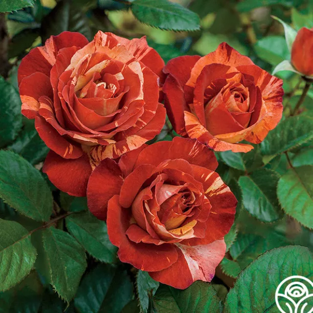 Add an element of delight to your garden with the vertical beauty of Tropical Lighting. Her striking, striped cream and dusky, red-orange blooms measure about 3.5” and fade to pink against the glossy, green foliage. Tropical Lightning may also be grown as a Shrub or as a Climber and will grow to 8-10’. Expect her to bloom in flushes throughout the season