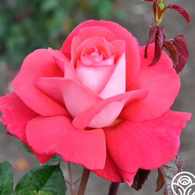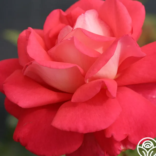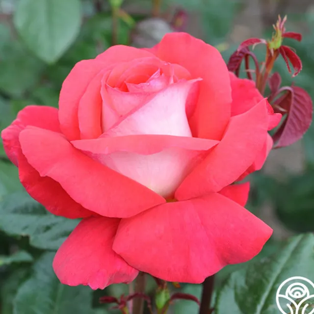 Like her parent plant, Fragrant Cloud, Typhoo Tea packs a punch with her strong, citrus-spice fragrance. This bi-color rose of salmon with a silvery white eye reverse has classically shaped blooms with a petal count of 35+ stretching across a diameter of 4-5”. She blooms in flushes throughout the season but prefers cooler weather and doesn’t tolerate excessive heat.