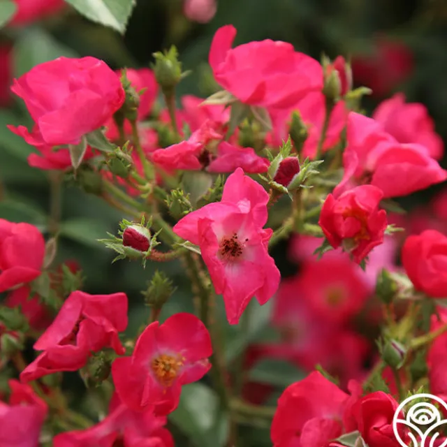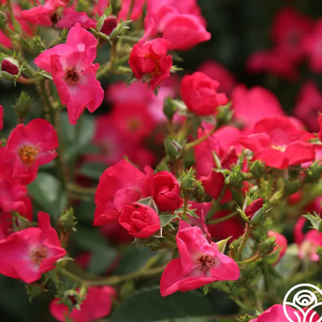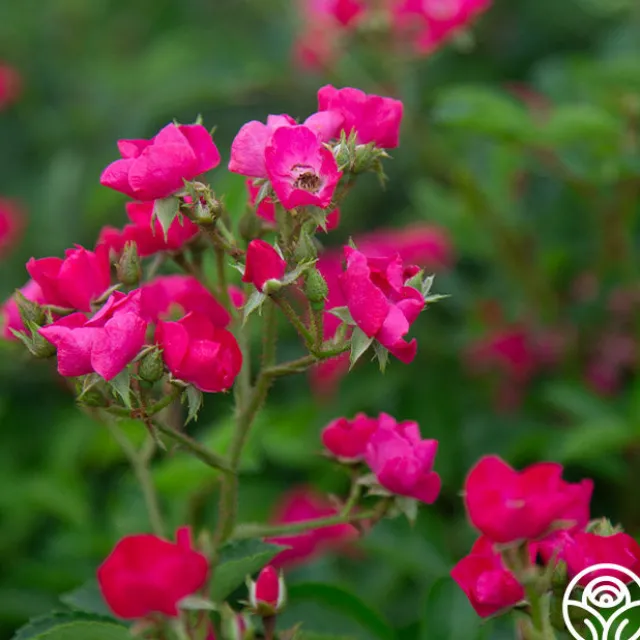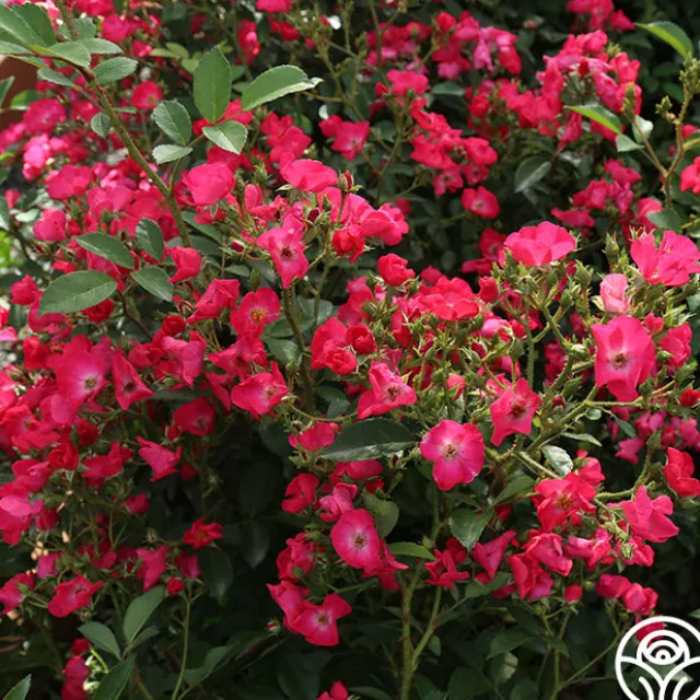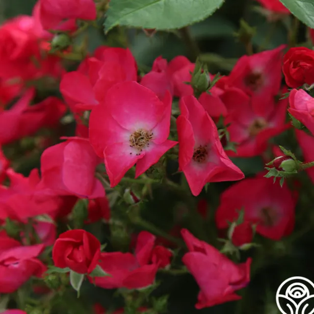 From Belgium, this Hybrid Musk produces small, red, single flowers of 4-11 petals. Vif Eclat produces blooms in clusters that arrive in flushes throughout the growing season with a mild fragrance. This disease resistant variety will stay compact at just under 3’ tall.