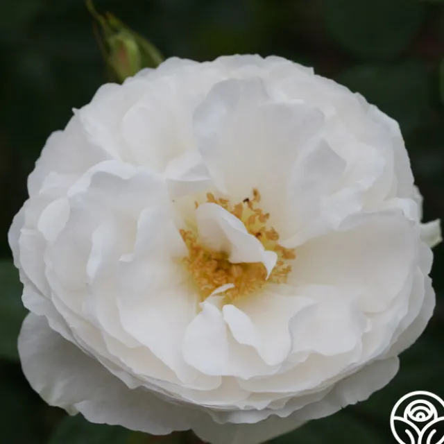 White Cloud is a beautiful, crisp white rose that may be grown as a Climber moving upwards of 8’ or grown as a Shrub with selective pruning. Her lovely buds open into beautiful, double blooms with eye-catching, rich golden centers. White Cloud produces clusters of blooms with a deliciously strong fragrance. She will occasionally repeat bloom later in the season.