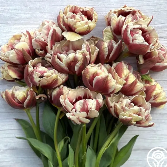 Note: Bulbs ship starting in October based on availability and your zone, unlike other products. Plant around or after your first frost but before the ground freezes. Wyndham is a late-blooming, double Tulip with a unique, moody look. Its pointed petals curve inward slightly, with soft beige edges and outer petals that show a blend of dusty cocoa and purple tones. Flowers grow on 18″ stems and prefer full sun. Grows well in Zones 3–8.