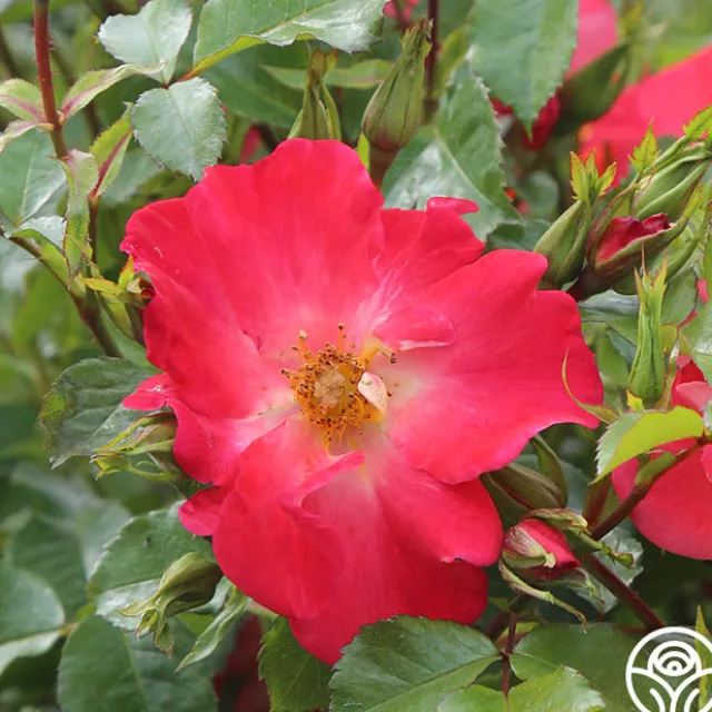 This cleverly named rose is a compact yet vigorous plant with large clusters of flowers that nearly cover any sign of her bright green leaves. Yabba Dabba Doo produces hundreds of very bright, pointy buds that open into huge hydrangea-like heads of warm orange pink with ‘eyes’ of yellow. She is pollinator friendly and does best in zones 7-10.