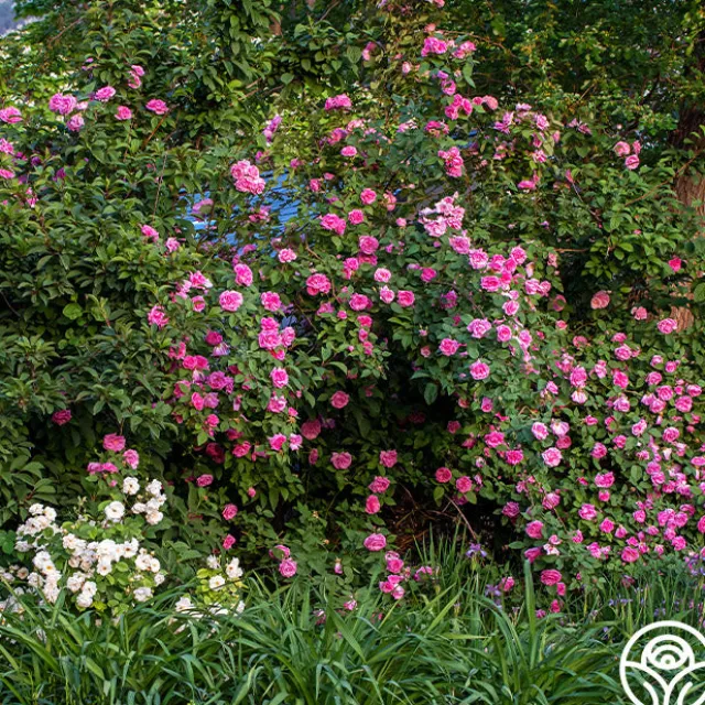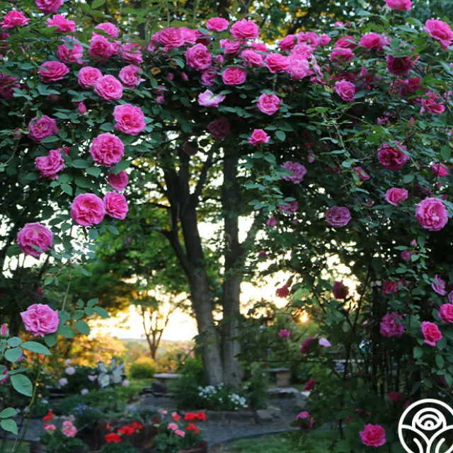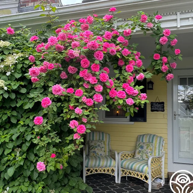 Zéphirine Drouhin is a beautiful and consistent, Climbing Bourbon with large, 4” flowers on nearly thornless canes. Her blooms have 16+ petals and are deep rose-pink, extremely fragrant, and produce lavishly as she blooms in flushes throughout the season. Zéphirine Drouhin is hardy, doesn’t mind partial shade, and will take off if she is given time to establish her roots and space to send out her long canes that can grow upwards of 10-15’. This special Bourbon is a favorite among many of our customers!